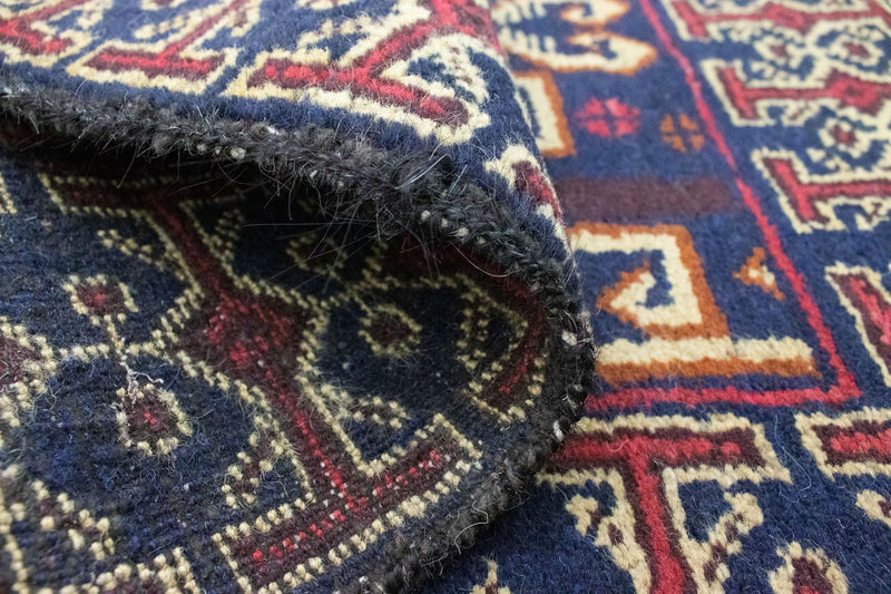 Esta alfombra baluch es un maravilloso ejemplo del verdadero arte nómada. Las baluch son anudadas en 3 países: Irán, Afganistán y Pakistán. Toma su nombre de la tribu baluch, pero también es anudada por otras tribus. La mayoría de las veces se anudan pequeñas alfombras o puentes. Las alfombras grandes son escasas. Tienen una muy buena relación calidad-precio, están cuidadosamente elaboradas y se fabrican en muchos diseños distintos, a menudo geométricos. Las alfombras son resistentes y son muy conocidas entre todas las alfombras nómadas modernas.