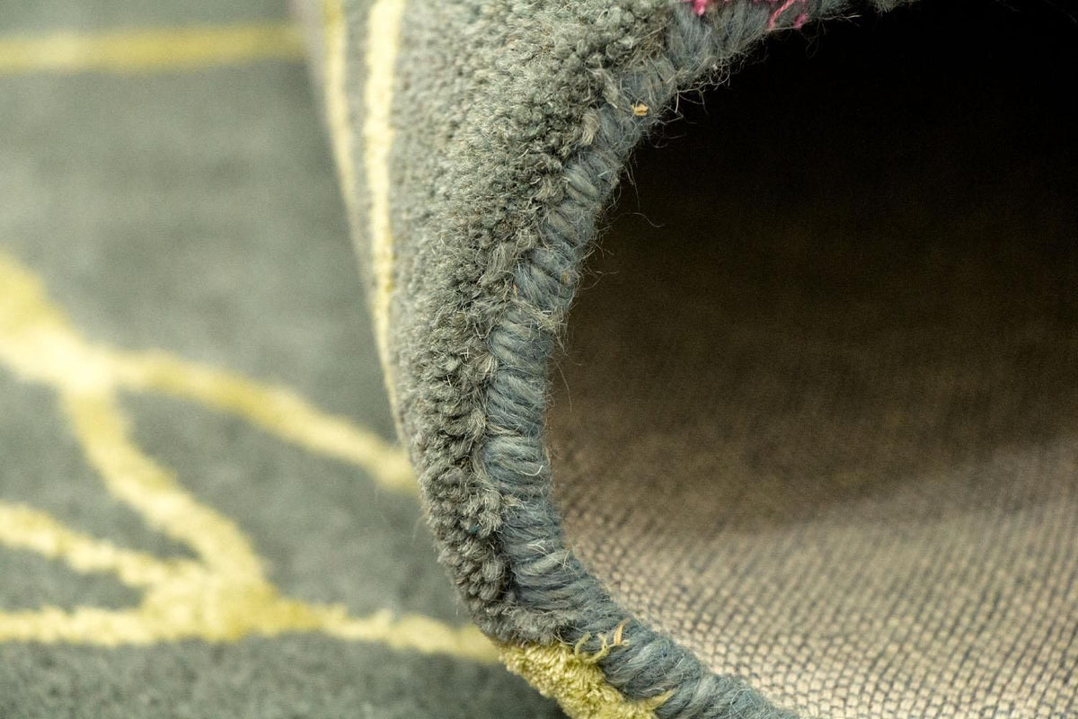 La lana hilada a mano otorga a la alfombra una superficie ligeramente texturizada y un brillo sutil — un auténtico signo de artesanía. Además, el material regula la temperatura, repele la suciedad y aporta una atmósfera cálida y confortable.