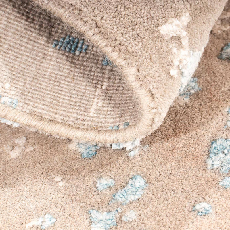La lana hilada a mano otorga a la alfombra una superficie ligeramente texturizada y un brillo sutil — un auténtico signo de artesanía. Además, el material regula la temperatura, repele la suciedad y aporta una atmósfera cálida y confortable.