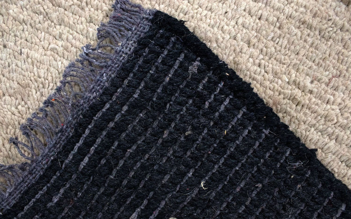 Esta alfombra está hecha exclusivamente con lana de oveja hilada a mano. Gracias a este trabajo manual, la lana conserva al máximo sus propiedades naturales: es resistente, elástica y suavemente acogedora al caminar.