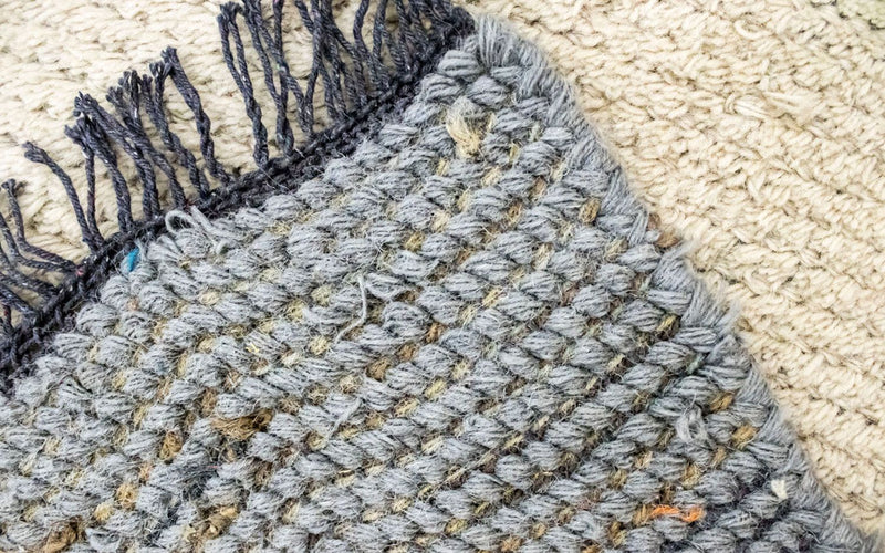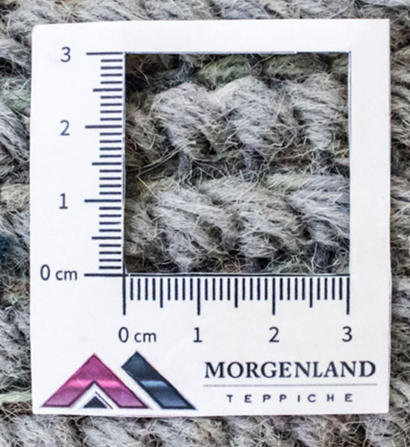 Esta alfombra está hecha exclusivamente con lana de oveja hilada a mano. Gracias a este trabajo manual, la lana conserva al máximo sus propiedades naturales: es resistente, elástica y suavemente acogedora al caminar.