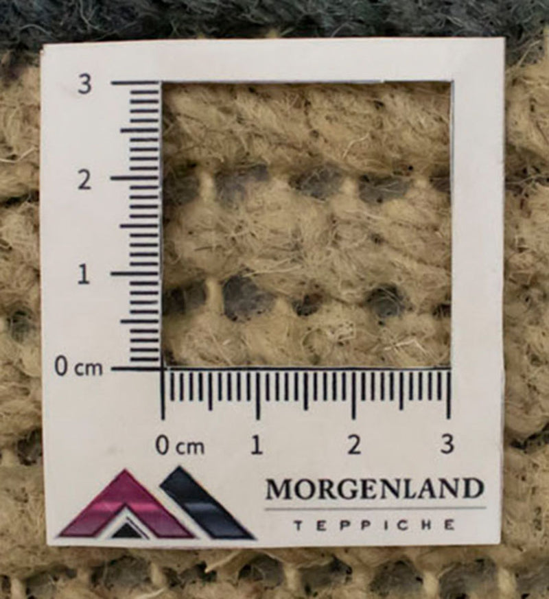 Esta alfombra está hecha exclusivamente con lana de oveja hilada a mano. Gracias a este trabajo manual, la lana conserva al máximo sus propiedades naturales: es resistente, elástica y suavemente acogedora al caminar.
