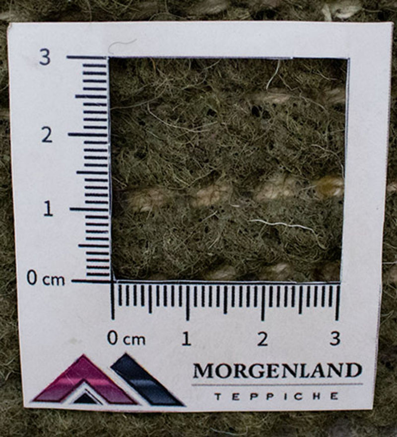 Esta alfombra está hecha exclusivamente con lana de oveja hilada a mano. Gracias a este trabajo manual, la lana conserva al máximo sus propiedades naturales: es resistente, elástica y suavemente acogedora al caminar.