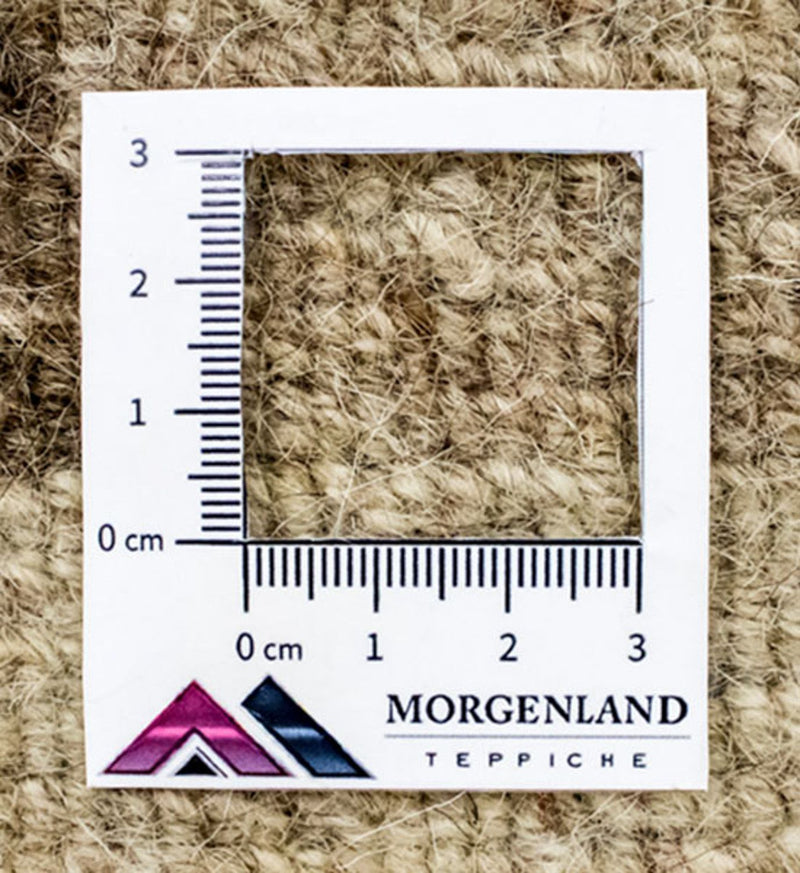 Esta alfombra está hecha exclusivamente con lana de oveja hilada a mano. Gracias a este trabajo manual, la lana conserva al máximo sus propiedades naturales: es resistente, elástica y suavemente acogedora al caminar.