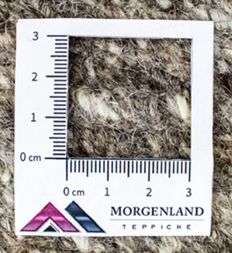Esta alfombra está hecha exclusivamente con lana de oveja hilada a mano. Gracias a este trabajo manual, la lana conserva al máximo sus propiedades naturales: es resistente, elástica y suavemente acogedora al caminar.