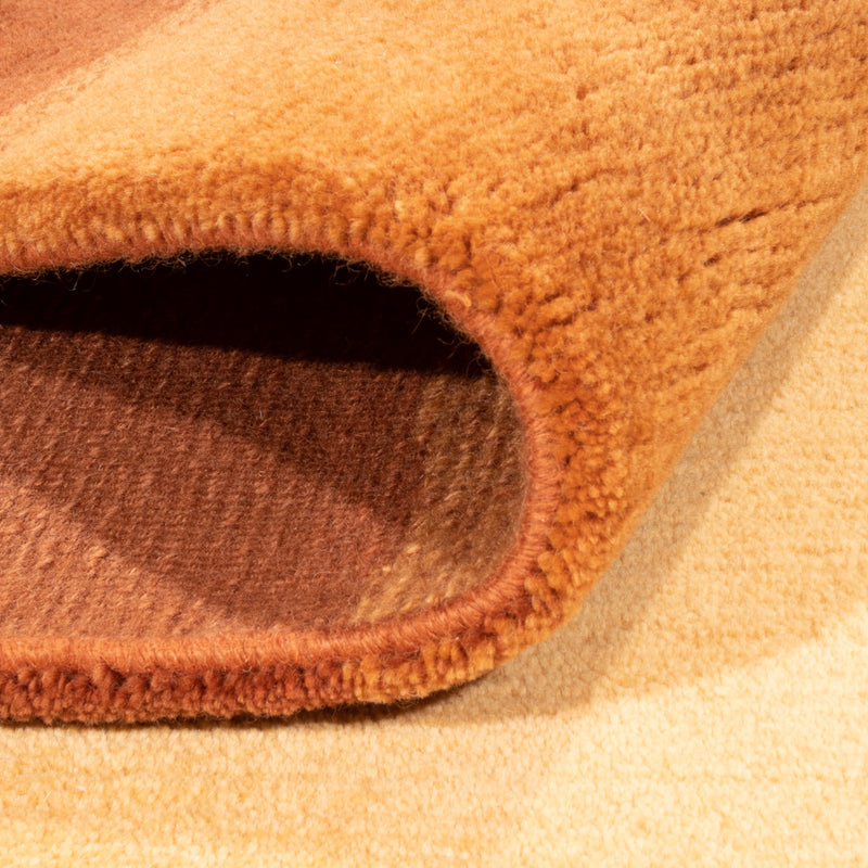 La lana hilada a mano otorga a la alfombra una superficie ligeramente texturizada y un brillo sutil — un auténtico signo de artesanía. Además, el material regula la temperatura, repele la suciedad y aporta una atmósfera cálida y confortable.