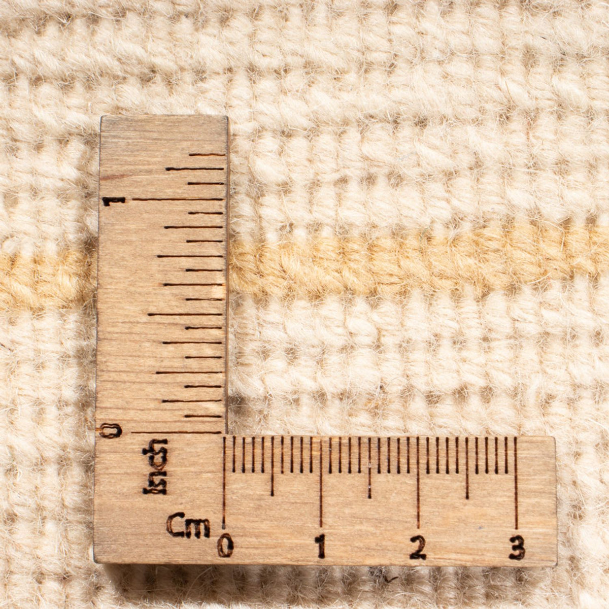 Esta alfombra está hecha exclusivamente con lana de oveja hilada a mano. Gracias a este trabajo manual, la lana conserva al máximo sus propiedades naturales: es resistente, elástica y suavemente acogedora al caminar.