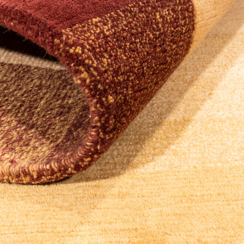 La lana hilada a mano otorga a la alfombra una superficie ligeramente texturizada y un brillo sutil — un auténtico signo de artesanía. Además, el material regula la temperatura, repele la suciedad y aporta una atmósfera cálida y confortable.