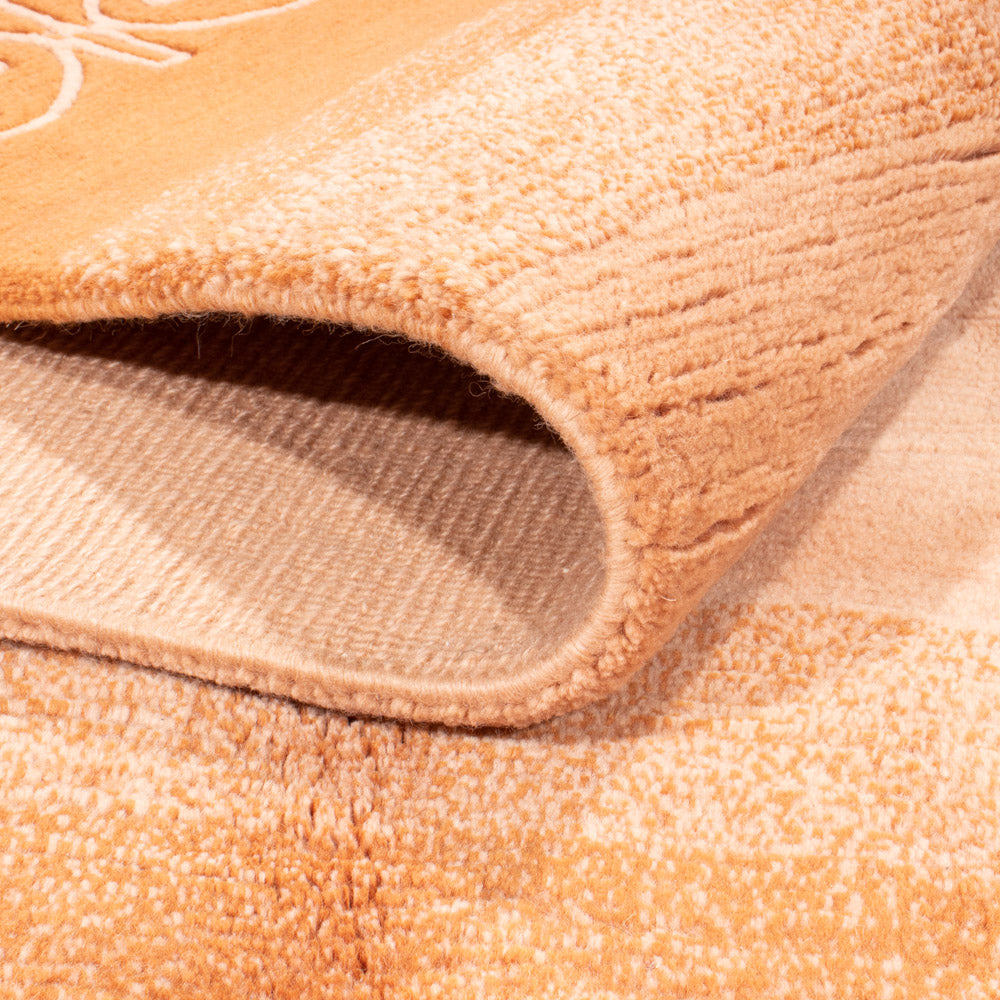 La lana hilada a mano otorga a la alfombra una superficie ligeramente texturizada y un brillo sutil — un auténtico signo de artesanía. Además, el material regula la temperatura, repele la suciedad y aporta una atmósfera cálida y confortable.