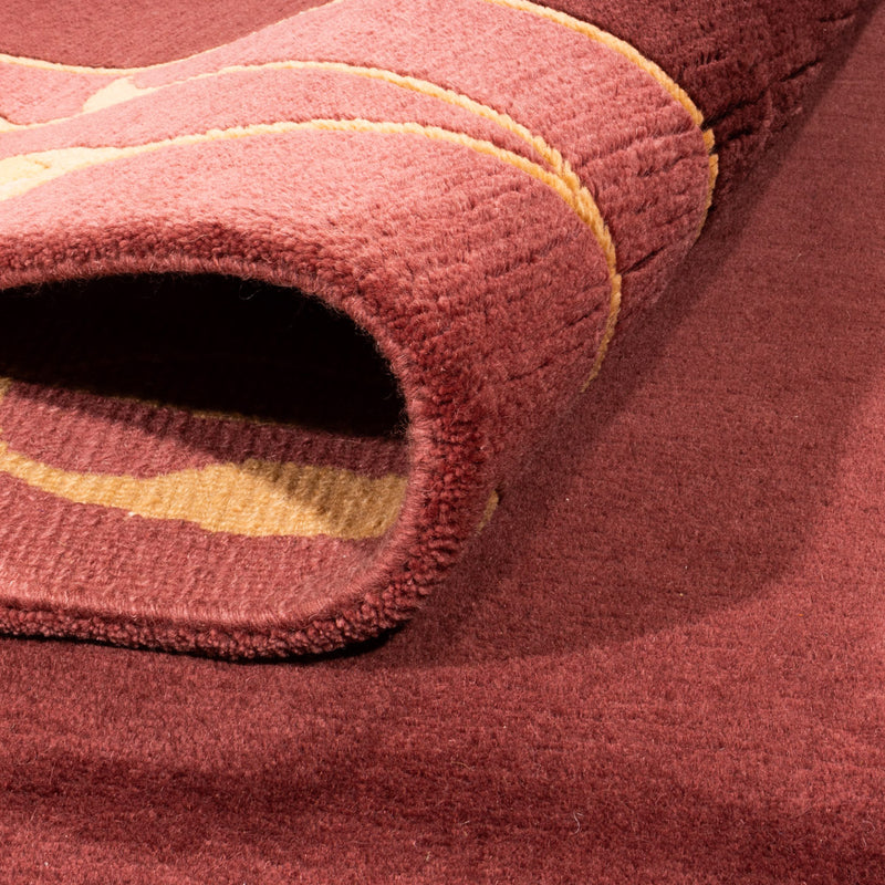 La lana hilada a mano otorga a la alfombra una superficie ligeramente texturizada y un brillo sutil — un auténtico signo de artesanía. Además, el material regula la temperatura, repele la suciedad y aporta una atmósfera cálida y confortable.