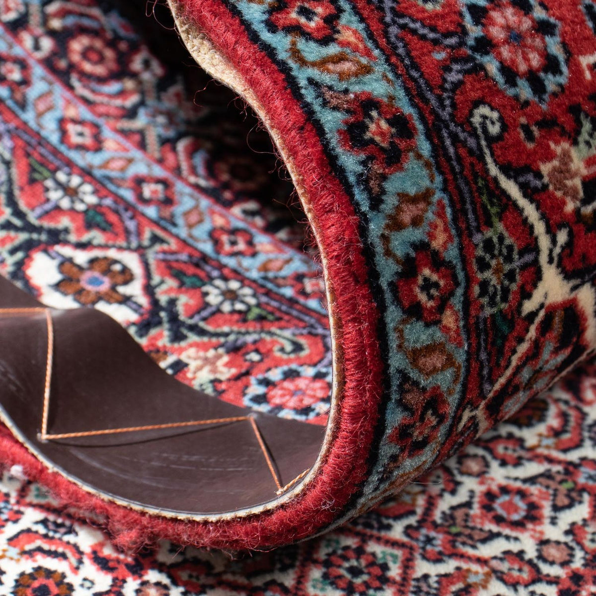 ¡Un pedazo de Oriente para su casa! Esta alfombra Bidjar procede de una pequeña ciudad kurda del oeste de Persia y es famosa por la durabilidad y robustez de su tejido, especialmente firme con el tradicional nudo turco. Esta técnica hace que la alfombra sea resistente a la suciedad y garantiza su durabilidad: su pelo se aprieta tanto con un peine que se levanta casi verticalmente. El patrón Herati es muy popular como diseño, pero también contiene patrones florales y de medallones.