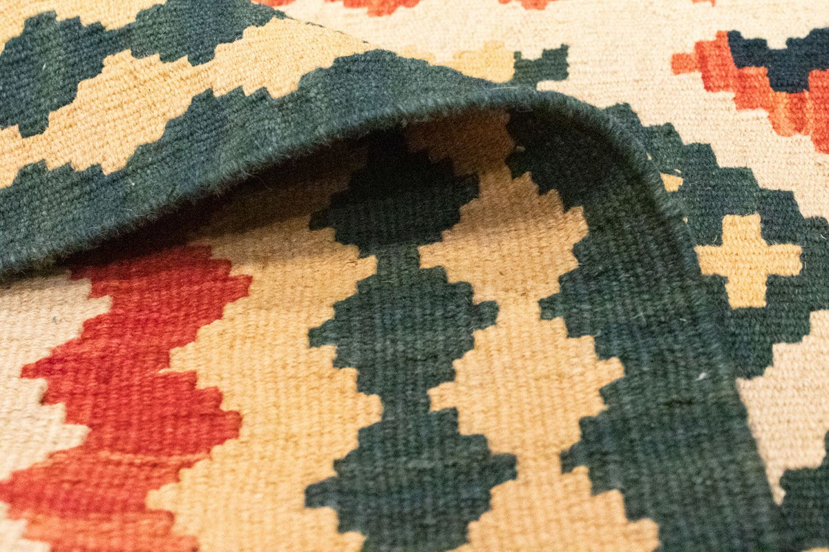 Este artístico Kelim - Oriental cautiva la vista con sus colores de moda, aportando una elegancia moderna y armoniosa a su ambiente. A diferencia de los clásicos alfombras orientales, los Kelim están tejidos a mano en lugar de anudados. En otros países, estos ejemplares también se utilizan como cojines o cortinas. Estos alfombras tienen un pelo fino, para el tejido superior se utiliza 100% lana virgen, que por naturaleza es extremadamente fácil de cuidar y resistente. Los expertos solo consideran auténticos Kelims aquellos fabricados en Turquía, la región del Cáucaso, Persia, Afganistán y Turkmenistán. Auténticos alfombras del Oriente, en efecto.