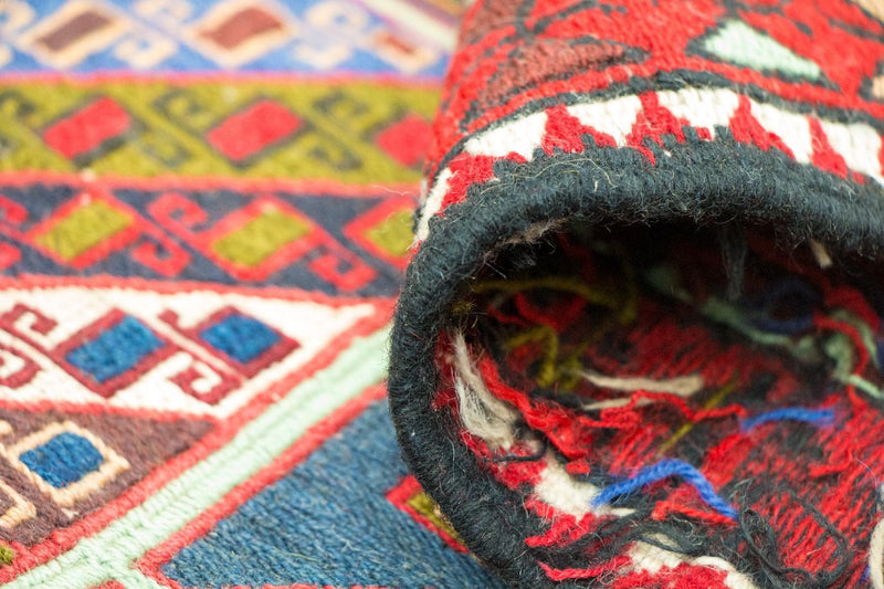 Este artístico Kelim - Oriental cautiva la vista con sus colores de moda, aportando una elegancia moderna y armoniosa a su ambiente. A diferencia de los clásicos alfombras orientales, los Kelim están tejidos a mano en lugar de anudados. En otros países, estos ejemplares también se utilizan como cojines o cortinas. Estos alfombras tienen un pelo fino, para el tejido superior se utiliza 100% lana virgen, que por naturaleza es extremadamente fácil de cuidar y resistente. Los expertos solo consideran auténticos Kelims aquellos fabricados en Turquía, la región del Cáucaso, Persia, Afganistán y Turkmenistán. Auténticos alfombras del Oriente, en efecto.