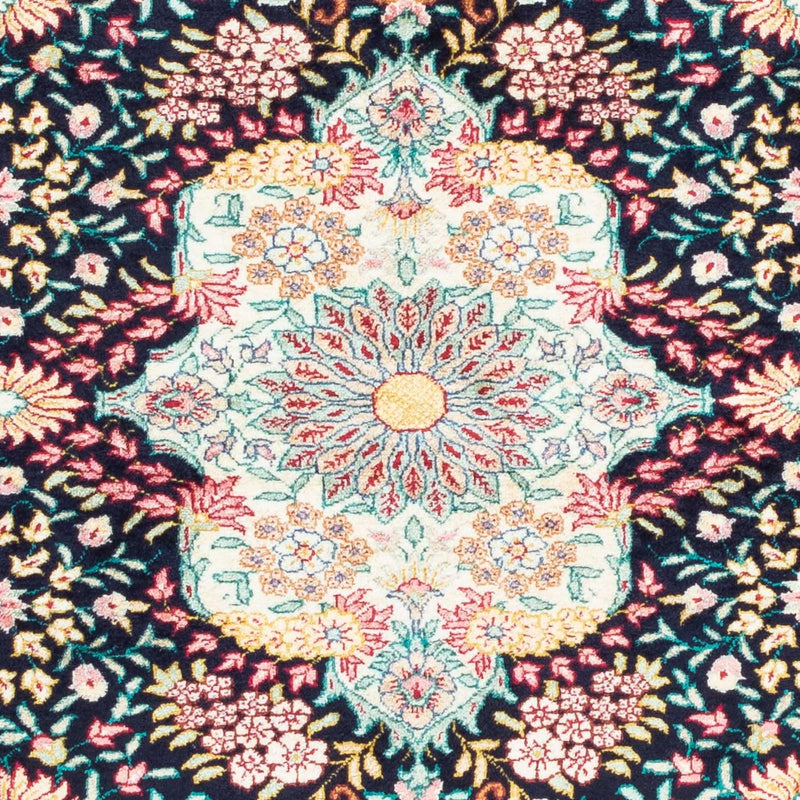 Estas hermosas alfombras se anudan en la ciudad sagrada de Ghom, en el centro de Persia. La alfombra Ghom es una de las obras de arte más exclusivas de Oriente. Se ofrece en tres variantes: lana de corcho sobre algodón, lana de corcho con seda sobre algodón y seda sobre seda. Incluso la alfombra Ghom en su variante de lana de corcho sobre algodón es excepcional. La lana de corcho procede del esquileo del cuello del cordero. Es suave y grasa, muy repelente a la suciedad y muy resistente. De la lana de corcho se pueden hilar hilos especialmente finos, que producen un tejido sutil con nudos densos. Las demás variantes de la alfombra Ghom hablan por sí solas. Cuanto más seda tenga una alfombra, más fino será el anudado, más detallado será el dibujo y mayor será la calidad de la alfombra.
