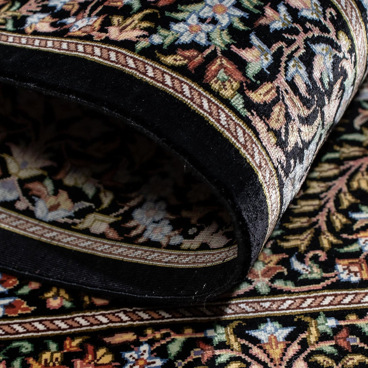 Estas hermosas alfombras se anudan en la ciudad sagrada de Ghom, en el centro de Persia. La alfombra Ghom es una de las obras de arte más exclusivas de Oriente. Se ofrece en tres variantes: lana de corcho sobre algodón, lana de corcho con seda sobre algodón y seda sobre seda. Incluso la alfombra Ghom en su variante de lana de corcho sobre algodón es excepcional. La lana de corcho procede del esquileo del cuello del cordero. Es suave y grasa, muy repelente a la suciedad y muy resistente. De la lana de corcho se pueden hilar hilos especialmente finos, que producen un tejido sutil con nudos densos. Las demás variantes de la alfombra Ghom hablan por sí solas. Cuanto más seda tenga una alfombra, más fino será el anudado, más detallado será el dibujo y mayor será la calidad de la alfombra.