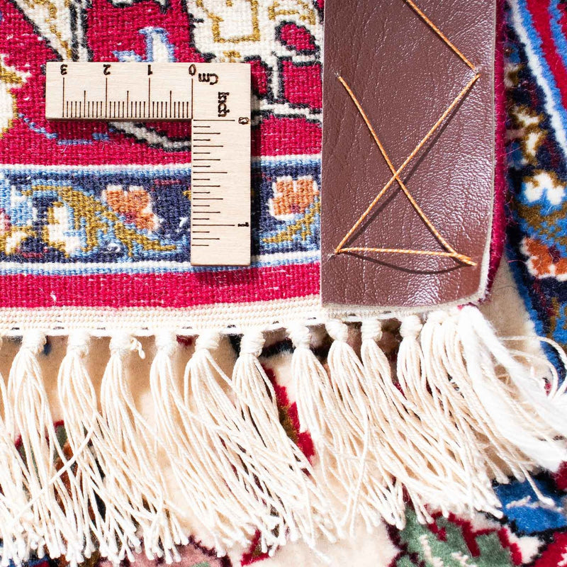 Esta alfombra persa - Isfahan - Premium lleva el lujo a su hogar. Esta alfombra está hecha 100% de seda y pertenece al nivel 4 de máxima calidad. Su densidad de nudos de aproximadamente 890.000 a 1.000.000 de nudos por metro cuadrado promete la mejor calidad y durabilidad. Las alfombras de Isfahan deben considerarse una artesanía exquisita. Isfahan es probablemente la ciudad más bella del Islam y esta alfombra es una parte importante de ella. Artísticos medallones, zonas con jarrones, pájaros o animales salvajes adornan la alfombra de Isfahan y la convierten en una de las más populares y, al mismo tiempo, en la alfombra persa de mayor calidad por su atención a los detalles, su alta densidad de nudos y su brillo sedoso. Los materiales de alta calidad son una cuestión de tradición. Por eso suele tener una urdimbre de seda. Incluso hoy, muchas alfombras de Isfahan tienen marcas anudadas en el borde. Puedes mirar una alfombra como ésta durante horas y olvidarte del tiempo, una experiencia que no se puede capturar en una foto.