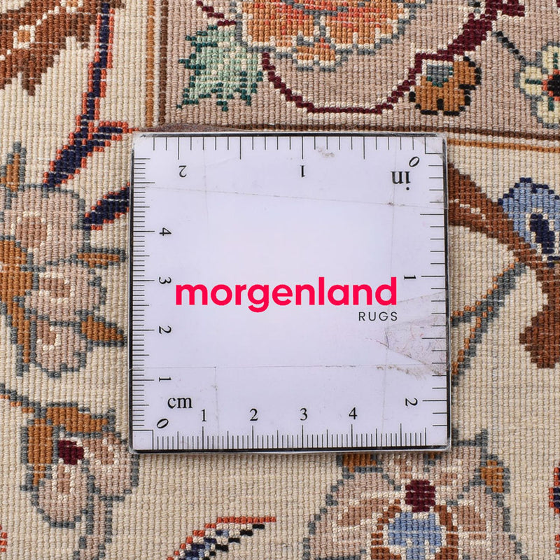 Esta alfombra persa - Isfahan - Premium lleva el lujo a su hogar. Esta alfombra está hecha 100% de seda y pertenece al nivel 4 de máxima calidad. Su densidad de nudos de aproximadamente 890.000 a 1.000.000 de nudos por metro cuadrado promete la mejor calidad y durabilidad. Las alfombras de Isfahan deben considerarse una artesanía exquisita. Isfahan es probablemente la ciudad más bella del Islam y esta alfombra es una parte importante de ella. Artísticos medallones, zonas con jarrones, pájaros o animales salvajes adornan la alfombra de Isfahan y la convierten en una de las más populares y, al mismo tiempo, en la alfombra persa de mayor calidad por su atención a los detalles, su alta densidad de nudos y su brillo sedoso. Los materiales de alta calidad son una cuestión de tradición. Por eso suele tener una urdimbre de seda. Incluso hoy, muchas alfombras de Isfahan tienen marcas anudadas en el borde. Puedes mirar una alfombra como ésta durante horas y olvidarte del tiempo, una experiencia que no se puede capturar en una foto.