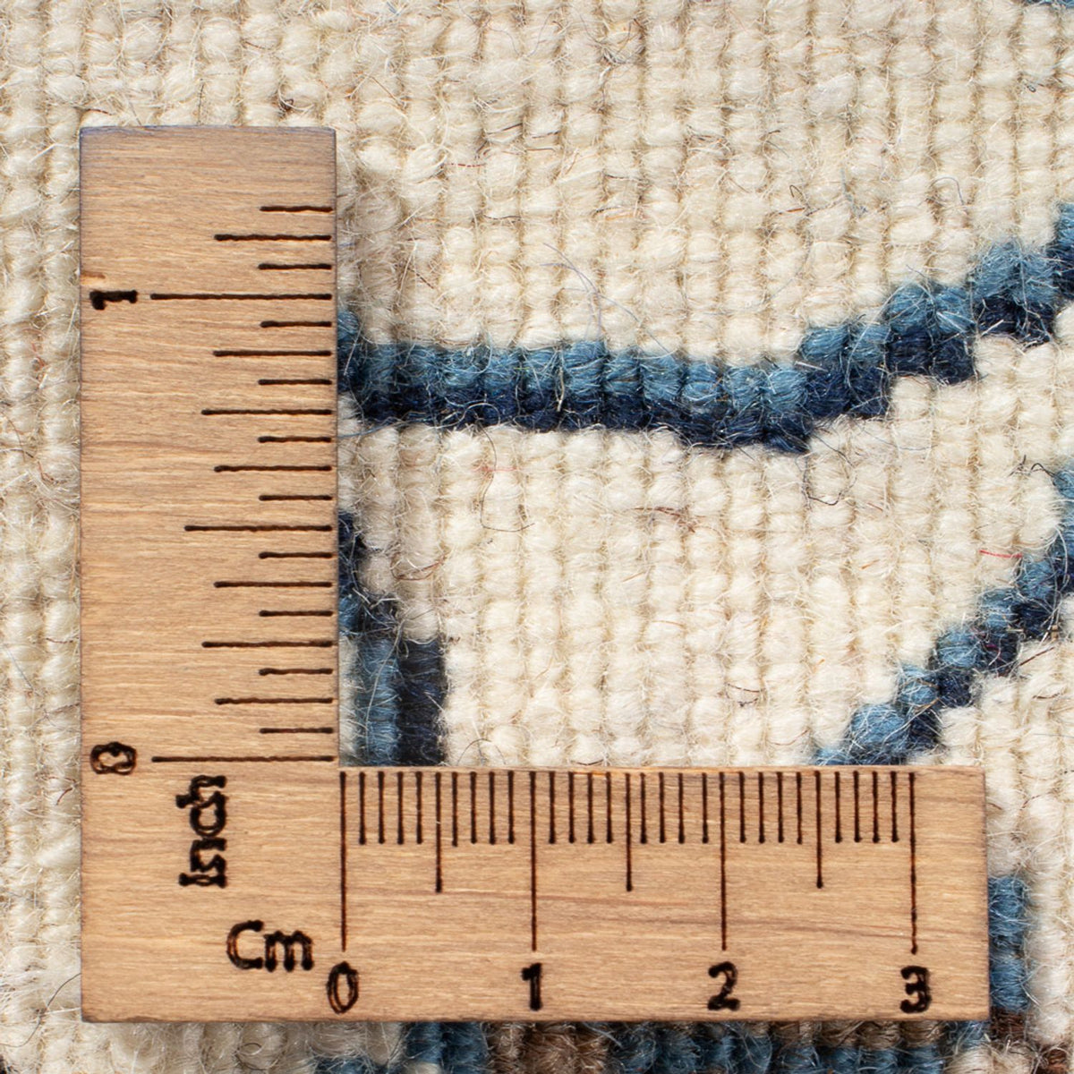 La lana hilada a mano otorga a la alfombra una superficie ligeramente texturizada y un brillo sutil — un auténtico signo de artesanía. Además, el material regula la temperatura, repele la suciedad y aporta una atmósfera cálida y confortable.