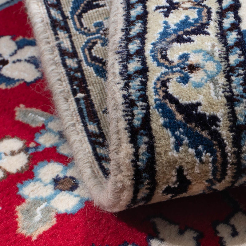 Las alfombras Nain se anudan con una finura excepcional. Como material de pelo se suele utilizar la mejor lana de kurk aterciopelada, y siempre se emplea la seda para poder realizar un dibujo exacto de medallones y diseños en toda la superficie. Nain se divide en 4 niveles de calidad, que se indican en "La". 4La, 6La, 9La, 12La. Es una denominación de calidad y se refiere al número de capas de hilo que contiene cada urdimbre. Cuanto menor sea el número indicado, mayor será la densidad de nudos, más fina y densa será la alfombra. Los Nains están entre los más bellos del mundo. También son muy populares entre los coleccionistas. Debido a su sencilla elegancia, los Nains también encajan en los interiores modernos y aportan lujo al hogar.