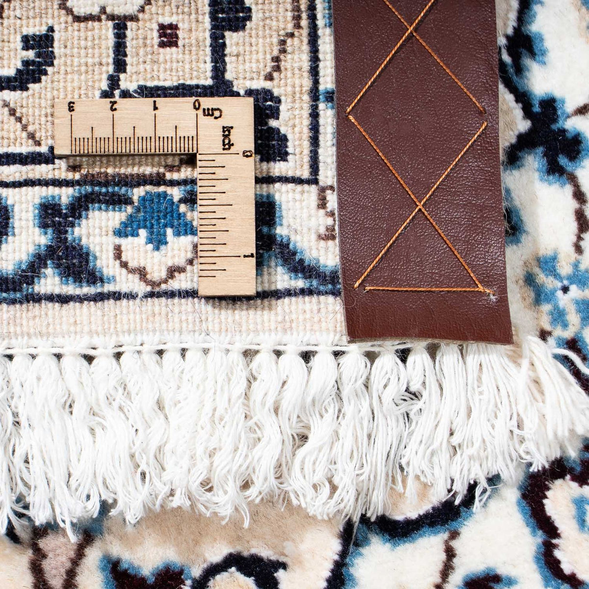 Nain 9La es una alfombra finamente anudada a mano que encajará perfectamente en su hogar. Está hecha de lana de corcho y de seda, lo que hace que se sienta particularmente suave bajo los pies y crea una atmósfera de lujo con su brillo. La alfombra persa nain 9la pertenece al nivel 3 de alta calidad con aproximadamente 250.000 a 360.000 nudos por metro cuadrado.