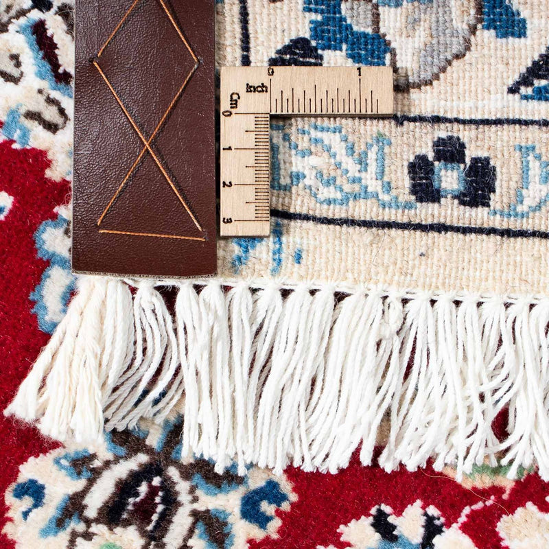 Nain 9La es una alfombra finamente anudada a mano que encajará perfectamente en su hogar. Está hecha de lana de corcho y de seda, lo que hace que se sienta particularmente suave bajo los pies y crea una atmósfera de lujo con su brillo. La alfombra persa nain 9la pertenece al nivel 3 de alta calidad con aproximadamente 250.000 a 360.000 nudos por metro cuadrado.