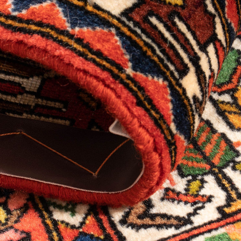 El encanto rústico, los cálidos tonos naturales en azul índigo y rojo, y una durabilidad excepcional caracterizan al Bachtiar. La lana de las tierras altas iraníes hilada a mano le otorga un brillo suave. El 'nudo de alfombra turco' asegura su robusta superficie. Bachtiar se considera uno de los más sencillos entre los alfombras persas. Se tejen tradicionalmente a mano en los pueblos alrededor de la ciudad iraní de Hamedan. Cada alfombra es una pieza única y llena de imaginación. Pequeñas irregularidades en el patrón indican esto. Los Bachtiars son hermosos alfombras con una atractiva relación calidad-precio.