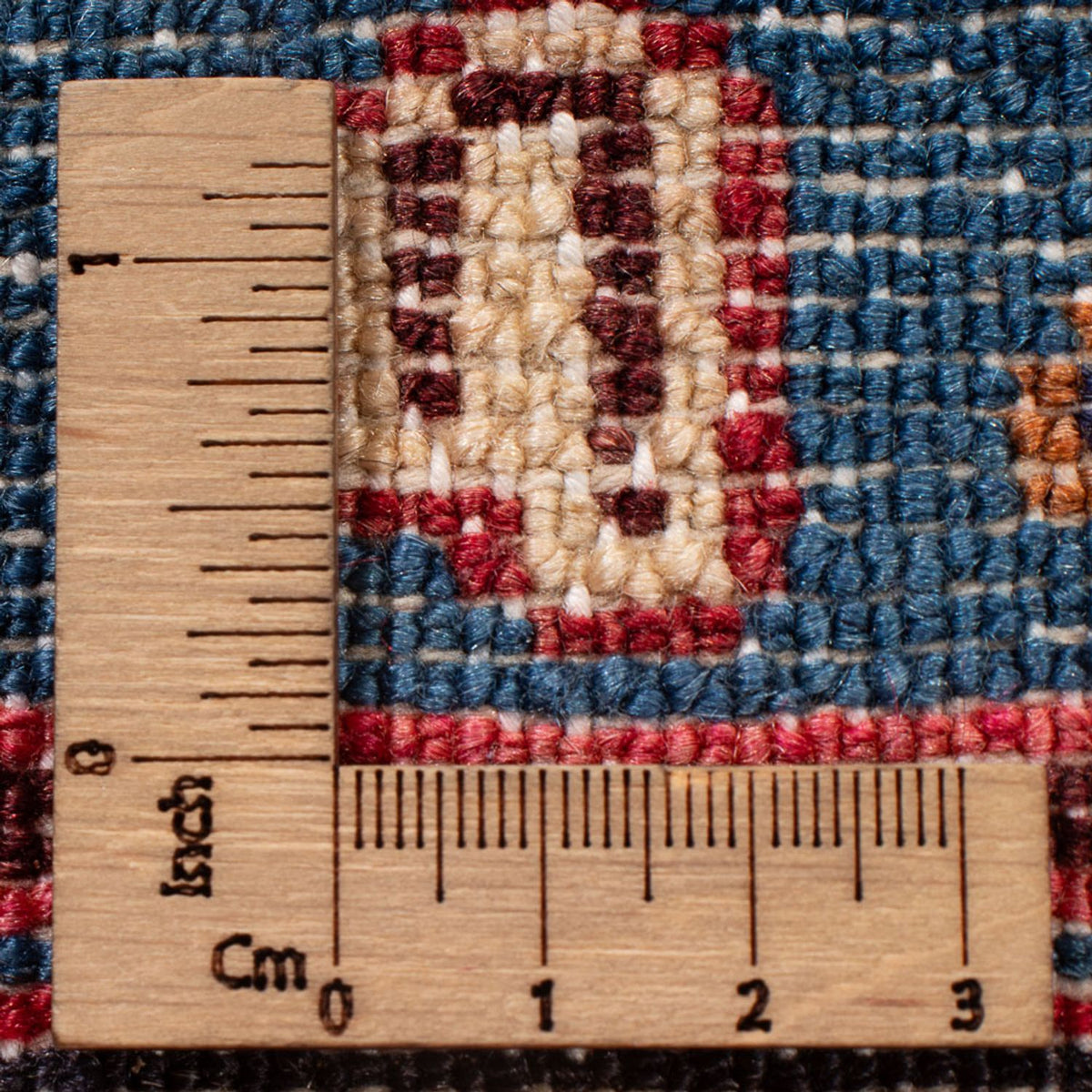 Esta alfombra Nahavand está fabricada con la mejor calidad. Encanto rústico, cálidos tonos naturales en azul índigo y rojo y especial durabilidad son las señas de identidad de la Nahavand. La lana de las tierras altas iraníes hilada a mano le confiere un suave brillo. El "nudo turco" aporta robustez a la superficie. La Nahavand se considera una de las alfombras persas más sencillas. Se anudan tradicionalmente a mano en los pueblos de los alrededores de la ciudad iraní de Hamedan. Cada alfombra es una pieza individual imaginativa. Las pequeñas irregularidades del dibujo así lo indican. Las Nahavand son hermosas alfombras utilitarias con una atractiva relación calidad-precio.