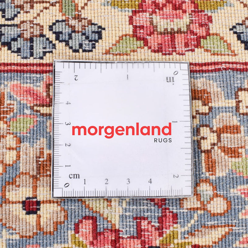 Esta alfombra persa - Royal hace palpitar los corazones con su diseño atemporal y su gran calidad. Esta es una Golpayegan, una alfombra de la familia de las alfombras de Isfahan, que pertenece al nivel 3 de alta calidad. Están anudadas a mano de forma muy elaborada y están decoradas con varios motivos diferentes. Suelen tener un medallón central con un elegante marco.