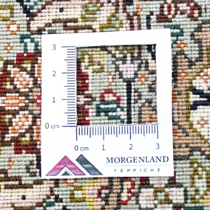 Esta alfombra persa finamente anudada - Tabriz - Royal está elaborada con lana de corcho de alta calidad, en un cuidadoso e impecable trabajo manual. El Tabriz 40 Raj es uno de los más bellos de su clase. Esta alfombra estableció la buena reputación del arte persa del anudado. Es una alfombra muy popular procedente de una de las mejores zonas de anudado de Persia. Suelen tener un gran medallón central con bellos motivos florales, un motivo típico oriental. Las alfombras de Tabriz suelen llevar la denominación adicional de Raj. Se distingue entre 40, 50, 60, 70, 80 Raj. Cuanto mayor sea el número, más fino y denso será el nudo de la alfombra. Raj es una designación de calidad y se refiere al número de nudos en un ancho de aproximadamente 70 mm. Gracias a su denso anudado, la alfombra es duradera, resistente y también muy adecuada para un uso extremo. La elegancia clásica y la riqueza del color caracterizan a esta noble alfombra.