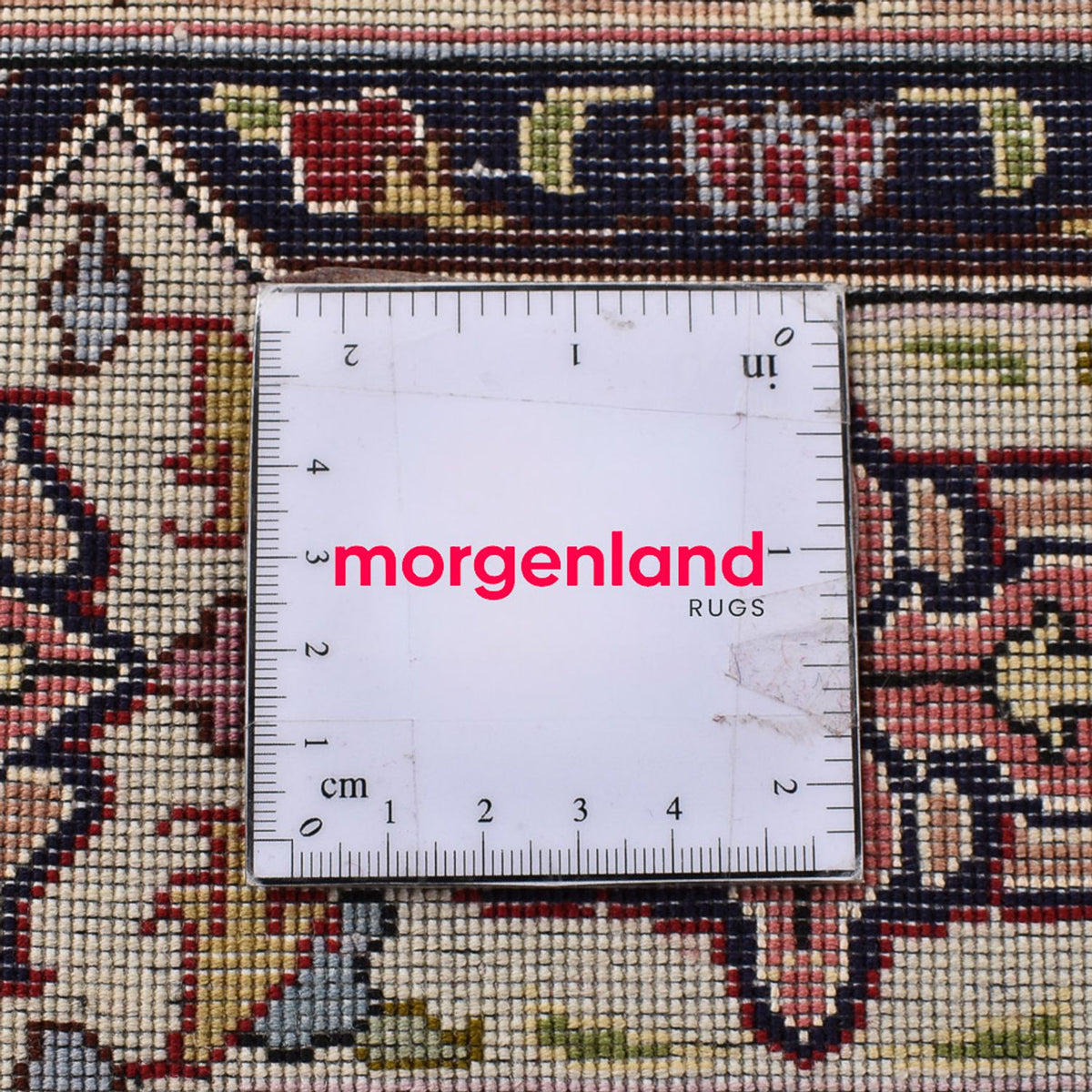 Esta alfombra persa finamente anudada - Tabriz - Royal está elaborada con lana de corcho de alta calidad, en un cuidadoso e impecable trabajo manual. El Tabriz 40 Raj es uno de los más bellos de su clase. Esta alfombra estableció la buena reputación del arte persa del anudado. Es una alfombra muy popular procedente de una de las mejores zonas de anudado de Persia. Suelen tener un gran medallón central con bellos motivos florales, un motivo típico oriental. Las alfombras de Tabriz suelen llevar la denominación adicional de Raj. Se distingue entre 40, 50, 60, 70, 80 Raj. Cuanto mayor sea el número, más fino y denso será el nudo de la alfombra. Raj es una designación de calidad y se refiere al número de nudos en un ancho de aproximadamente 70 mm. Gracias a su denso anudado, la alfombra es duradera, resistente y también muy adecuada para un uso extremo. La elegancia clásica y la riqueza del color caracterizan a esta noble alfombra.