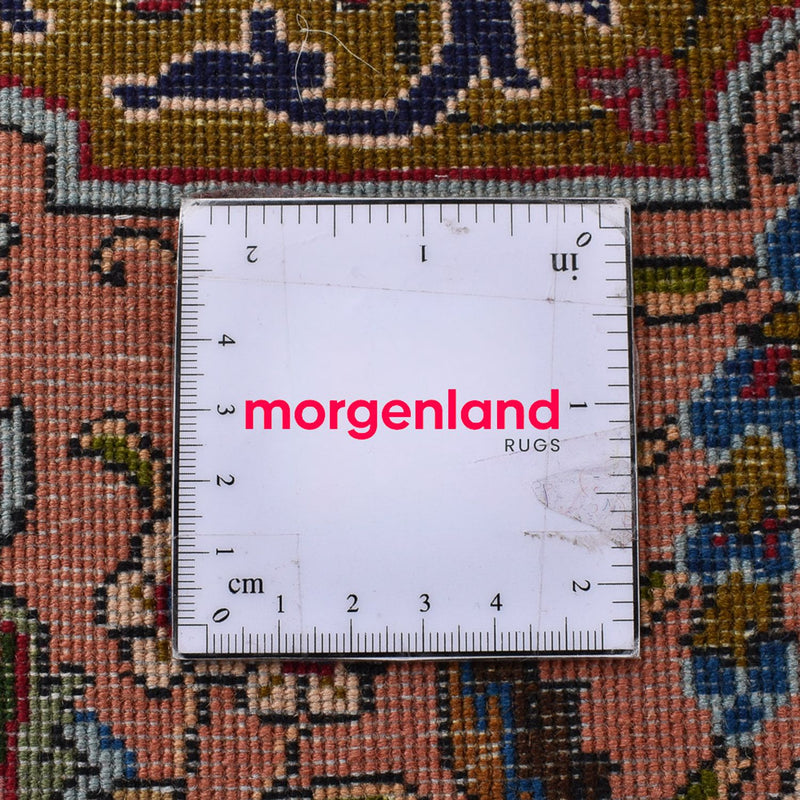 Esta alfombra persa finamente anudada - Tabriz - Royal está elaborada con lana de corcho de alta calidad, en un cuidadoso e impecable trabajo manual. El Tabriz 40 Raj es uno de los más bellos de su clase. Esta alfombra estableció la buena reputación del arte persa del anudado. Es una alfombra muy popular procedente de una de las mejores zonas de anudado de Persia. Suelen tener un gran medallón central con bellos motivos florales, un motivo típico oriental. Las alfombras de Tabriz suelen llevar la denominación adicional de Raj. Se distingue entre 40, 50, 60, 70, 80 Raj. Cuanto mayor sea el número, más fino y denso será el nudo de la alfombra. Raj es una designación de calidad y se refiere al número de nudos en un ancho de aproximadamente 70 mm. Gracias a su denso anudado, la alfombra es duradera, resistente y también muy adecuada para un uso extremo. La elegancia clásica y la riqueza del color caracterizan a esta noble alfombra.