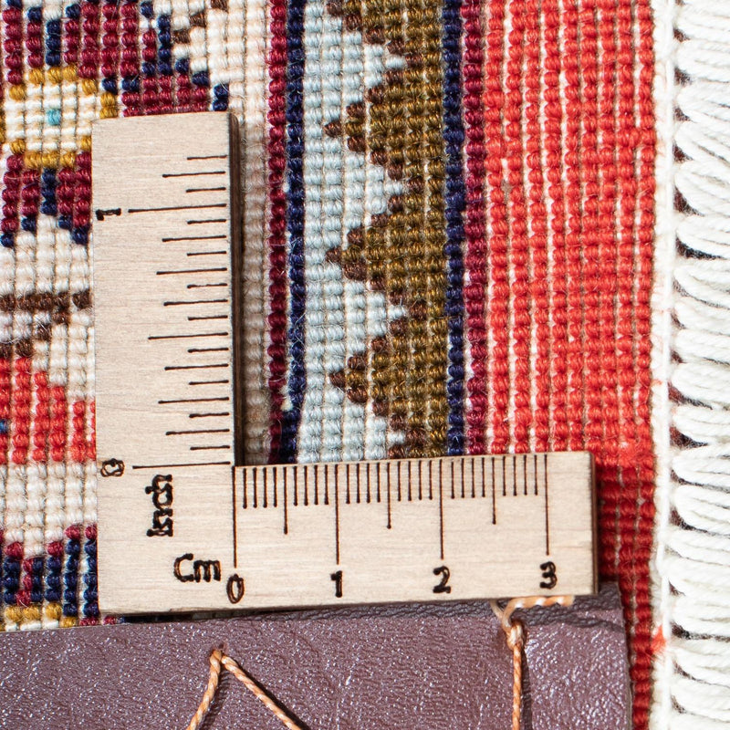 Esta alfombra persa finamente anudada - Tabriz - Royal está elaborada con lana de corcho de alta calidad, en un cuidadoso e impecable trabajo manual. El Tabriz 40 Raj es uno de los más bellos de su clase. Esta alfombra estableció la buena reputación del arte persa del anudado. Es una alfombra muy popular procedente de una de las mejores zonas de anudado de Persia. Suelen tener un gran medallón central con bellos motivos florales, un motivo típico oriental. Las alfombras de Tabriz suelen llevar la denominación adicional de Raj. Se distingue entre 40, 50, 60, 70, 80 Raj. Cuanto mayor sea el número, más fino y denso será el nudo de la alfombra. Raj es una designación de calidad y se refiere al número de nudos en un ancho de aproximadamente 70 mm. Gracias a su denso anudado, la alfombra es duradera, resistente y también muy adecuada para un uso extremo. La elegancia clásica y la riqueza del color caracterizan a esta noble alfombra.