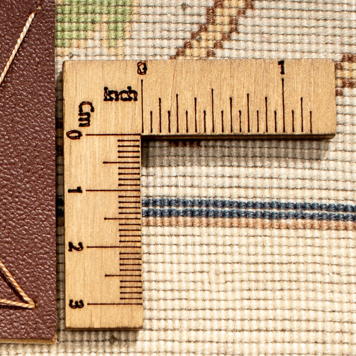 La lana hilada a mano otorga a la alfombra una superficie ligeramente texturizada y un brillo sutil — un auténtico signo de artesanía. Además, el material regula la temperatura, repele la suciedad y aporta una atmósfera cálida y confortable.