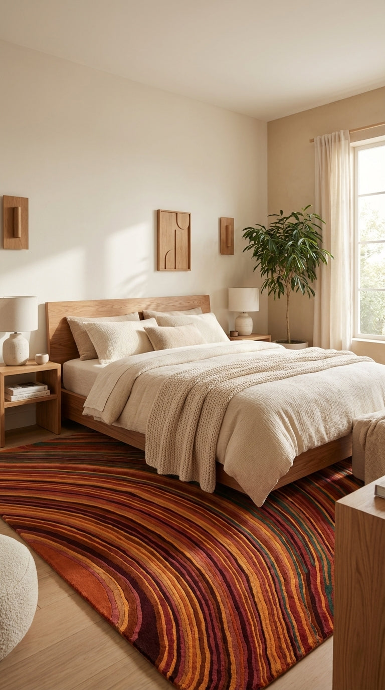 La lana hilada a mano aporta una textura única y ligeramente irregular, con un brillo sutil característico de la auténtica artesanía. Además, regula la temperatura, repele la suciedad y contribuye a un ambiente interior confortable.