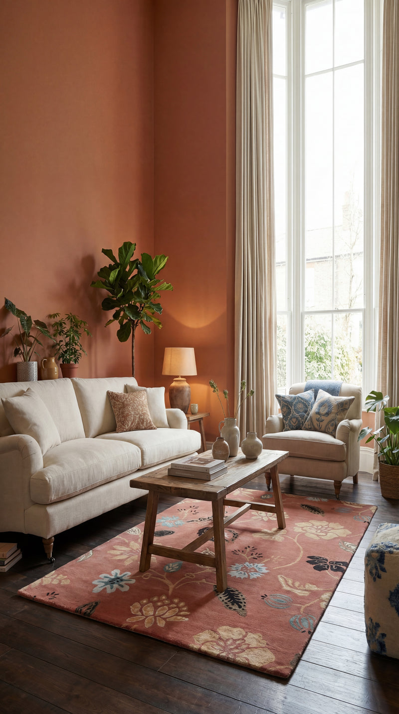 La lana hilada a mano aporta una textura única y ligeramente irregular, con un brillo sutil característico de la auténtica artesanía. Además, regula la temperatura, repele la suciedad y contribuye a un ambiente interior confortable.